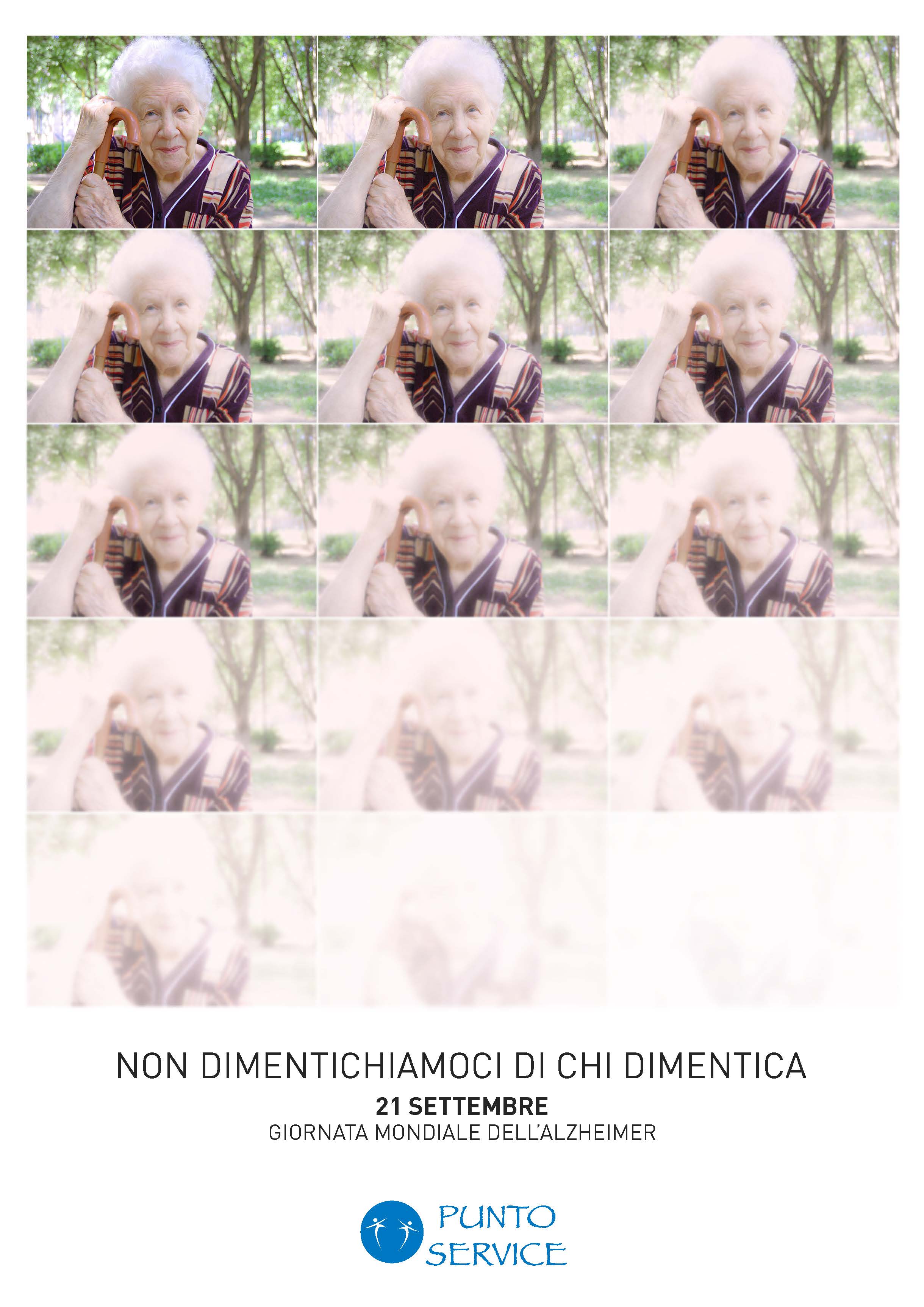 Anche la nostra Cooperativa nel mese di Settembre, in occasione della Giornata Mondiale dell’Alzheimer, vuole partecipare attivamente alla campagna di sensibilizzazione cercando di riunire in questa giornata associazioni di volontari, familiari e persone affette da demenza. Punto Service proporrà incontri e iniziative nelle varie strutture del gruppo per portare in primo piano la malattia dell’Alzheimer e dare sostegno a quanti la combattono ogni giorno. L’Alzheimer è una questione medica e sociale, ma insieme è possibile affrontare la demenza.